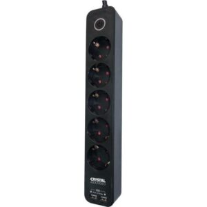 ΠΟΛΥΠΡΙΖΟ ΠΡΟΣΤΑΣΙΑΣ 5 ΘΕΣΕΩΝ ΜΕ 2 ΘΥΡΕΣ USB, ΚΑΛΩΔΙΟ & ΔΙΑΚΟΠΤΗ ΜΑΥΡΟ