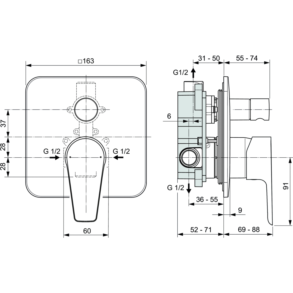 Αναμίκτης εντοιχιζόμενος ΙΙ Cerafine D kit χρωμέ Ideal Standard.