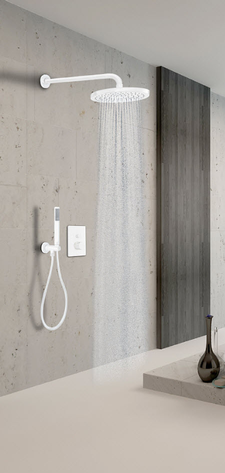 Ολοκληρωμένο σετ ντουζ εντοιχιζόμενο σε λευκό χρώμα, της σειράς Lino από την Bossini.