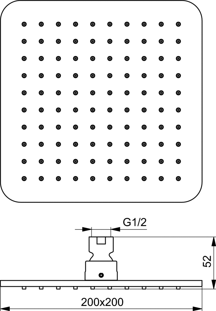 Idealrain Cube τετράγωνη κεφαλή ντους 20×20 cm 1 λειτουργίας, με ακροφύσια εύκολου καθαρισμού,
