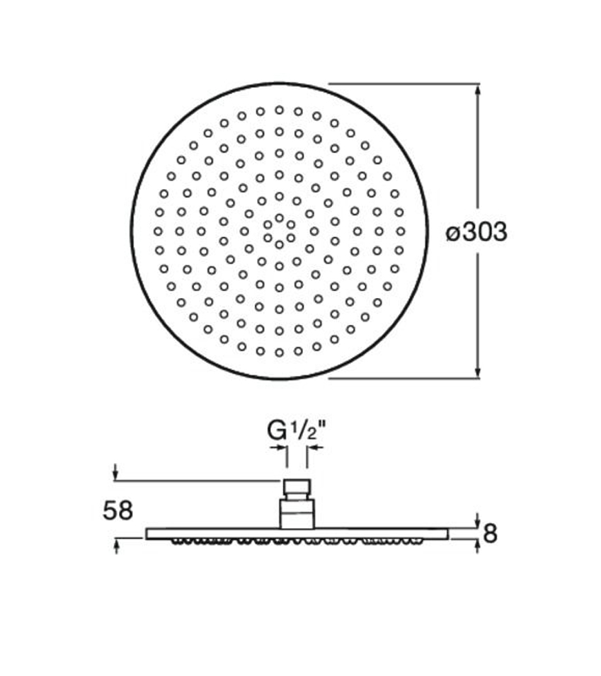Raindream στρογγυλή κεφαλή ντους Extraslim 1 λειτουργίας διαμέτρου 30cm, με ακροφύσια εύκολου καθαρισμού,