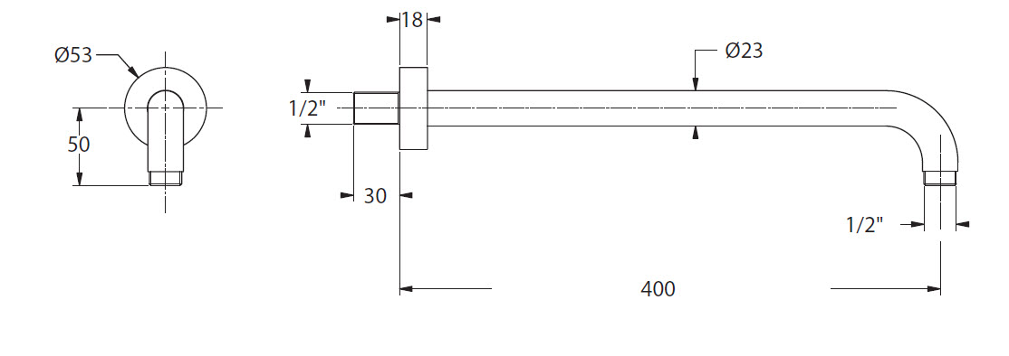 Επίτοιχος βραχίονας για στήριξη κεφαλής ντους, στρογγυλός σε χρώμα νίκελ βουρτσιστό και ματ υφή από την Piccadilly.