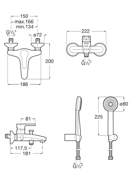 Επίτοιχη αναμεικτική μπαταρία λουτρού σετ Arola Roca, χρωμέ.