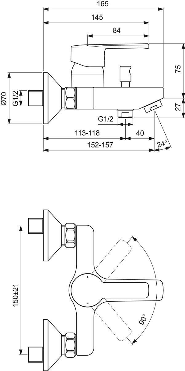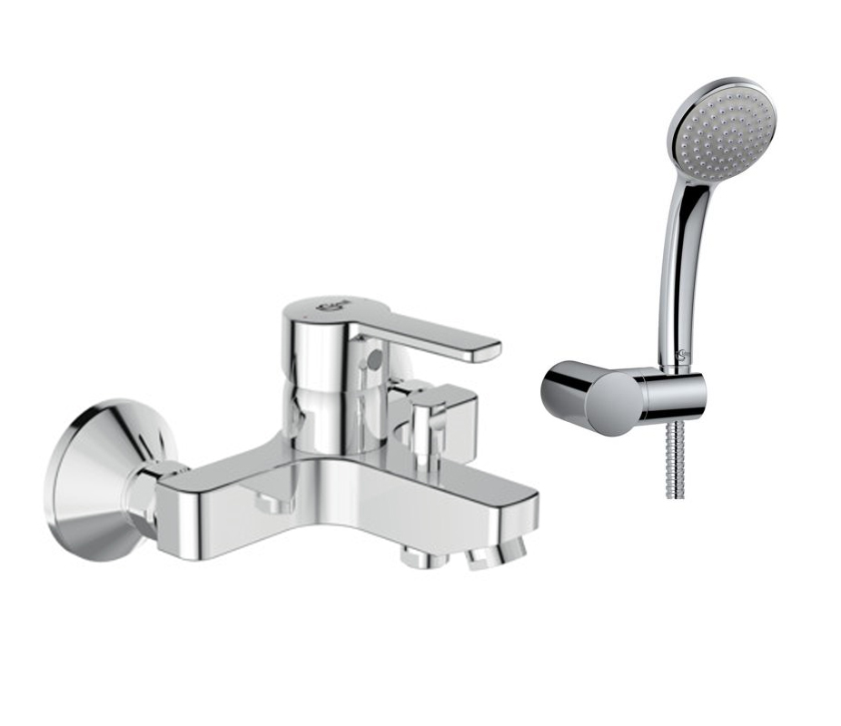 Επίτοιχη αναμικτική μπαταρία λουτρού σετ IdealStream από την Ideal Standard, με κεραμικό μηχανισμό 35mm, S-Connectors, αυτόματο διανομέα, σε χρωμέ φινίρισμα.