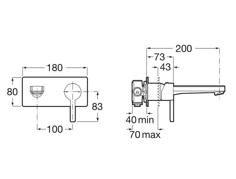 Μπαταρία νιπτήρα εντοιχιζόμενη Naia titanium black Roca.