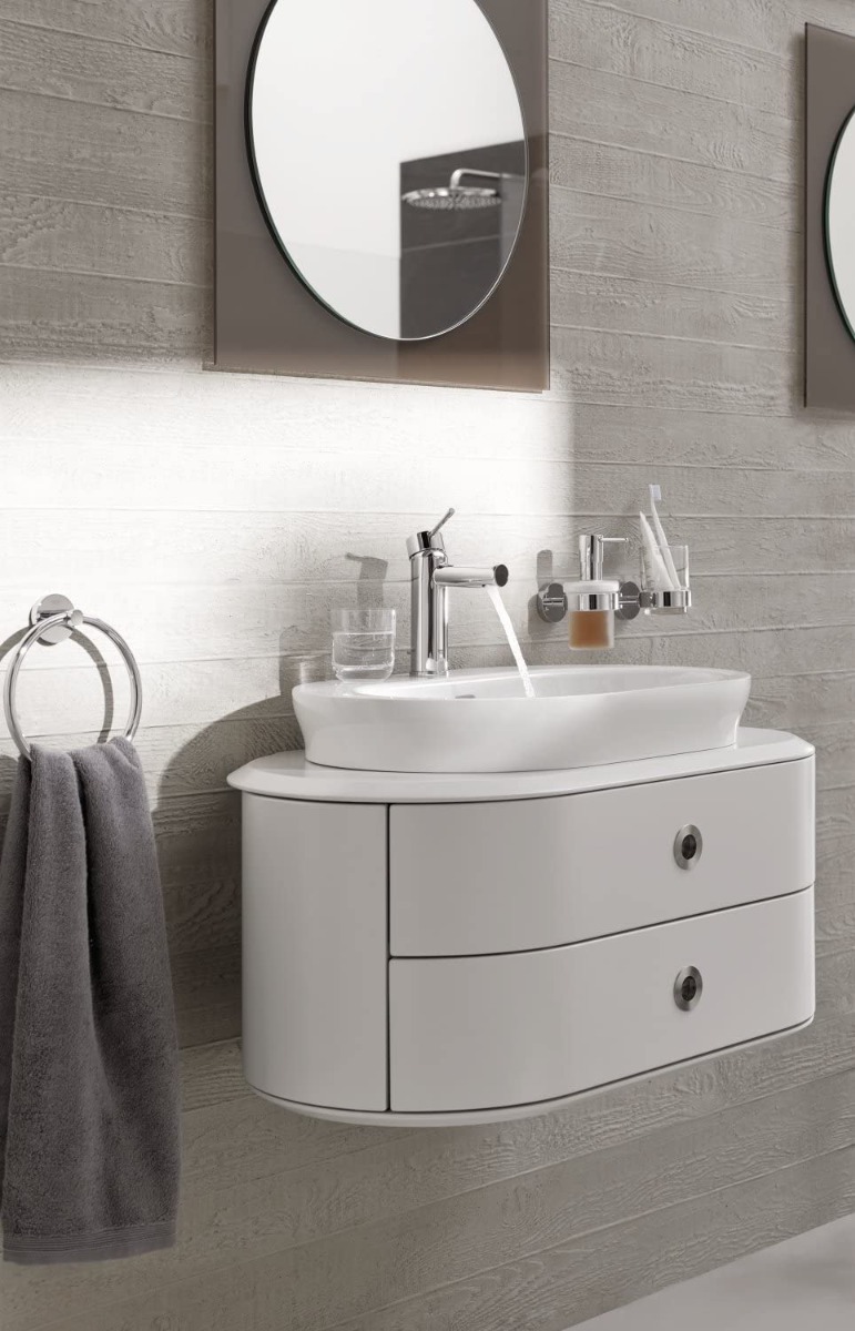 Η μπαταρία νιπτήρος Essence με κομψό σχεδιασμό σε κυλινδρικά σχήματα και το λαμπερό φινίρισμα χρωμίου GROHE StarLight, αυτή η μπαταρία μπάνιου θα μαγνητίσει όλα τα βλέμματα μέσα στο μπάνιο σας.
