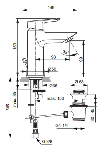 Μπαταρία νιπτήρος Tesi χρωμέ Ideal Standard.