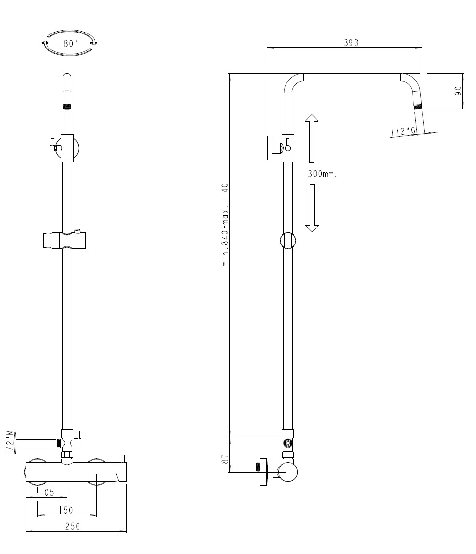Στήλη ντουζ MX1E15529CR με μπαταριά σετ χρωμέ Piccadilly.