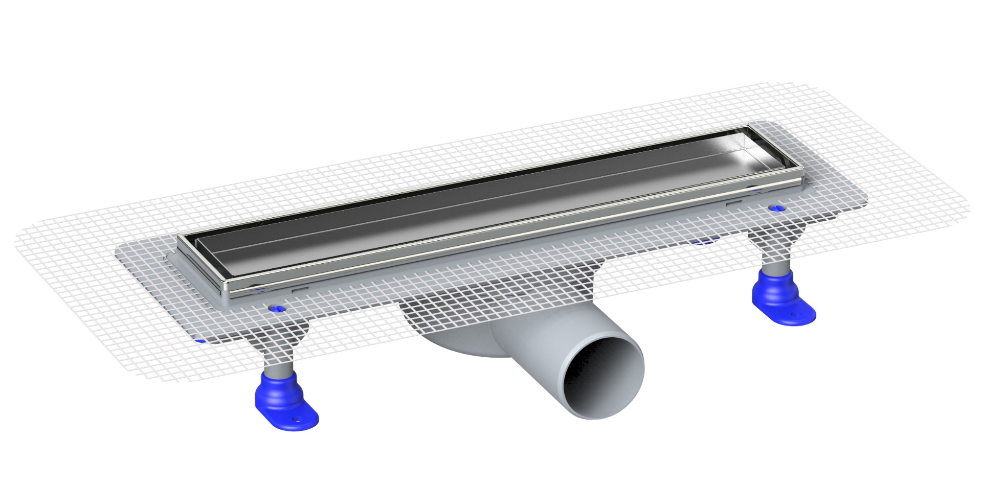 Γραμμικό σιφώνι – κανάλι ντουζιέρας 60cm με έξοδο Φ50, σώμα από πλαστικό ABS και μεταλλική σχάρα INOX 304, καθώς και μεταλλικό πλαίσιο INOX 304.
