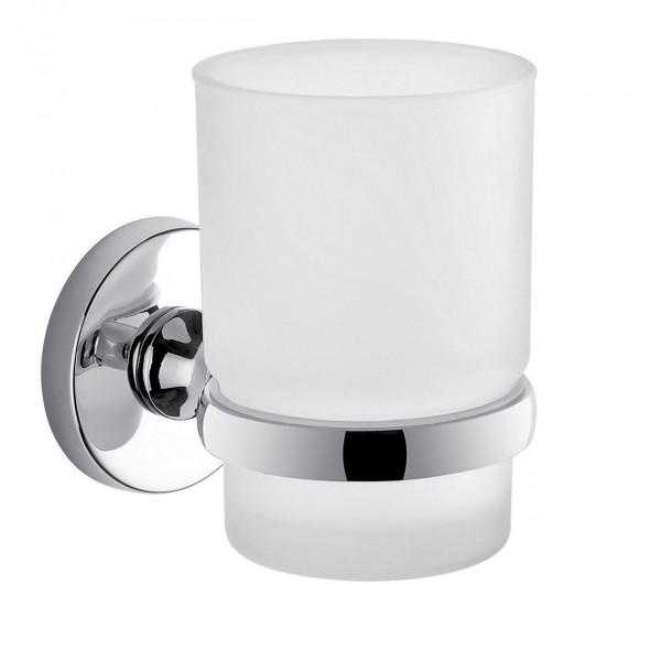 Επίτοιχη ποτηροθήκη μπάνιου μεταλλική χρωμέ με αμμοβολισμένο γυάλινο ποτήρι.