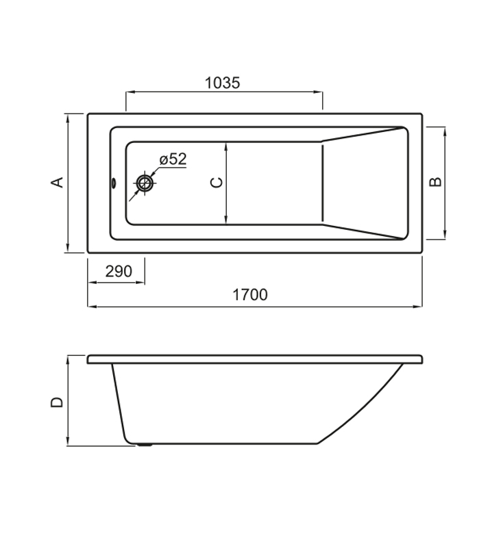Μπανιέρα ορθογώνια 170x75cm ακρυλική Nolah Roca.