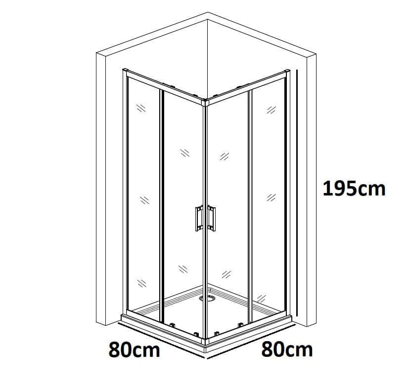 Γωνιακής εισόδου με 2 σταθερές και 2 συρόμενες πόρτες, με διάσταση κάθε πόρτας 80cm, ύψος 195cm και άνοιγμα εισόδου 41cm.