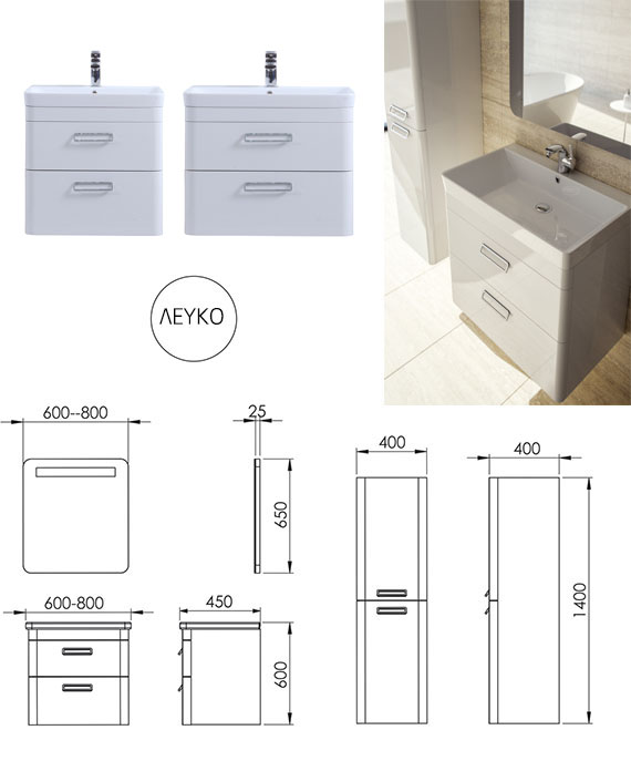 Καθρέπτης μπάνιου 60cm, της συλλογής ΠΕΡΛΑ, μοντέρνος σχεδιασμός σε λευκή λάκα