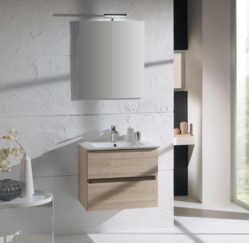 Βάση επίπλου μπάνιου κρεμαστή 60cm, της συλλογής ΚΟΡΑ. Περιλαμβάνει δύο συρτάρια σε χρώμα καφέ.