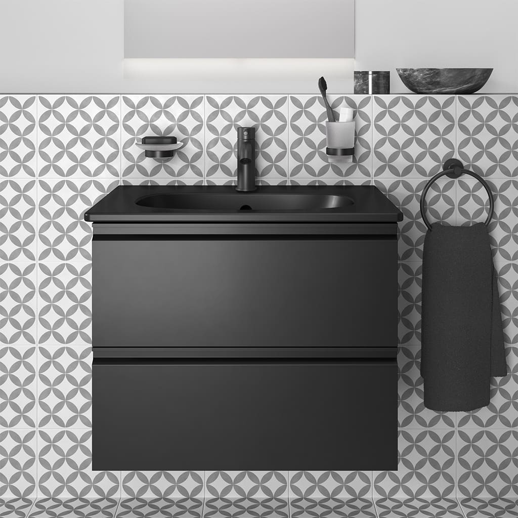 Διαθέτει 2 συρτάρια με μηχανισμό soft closing, σε χρώμα silk black.
