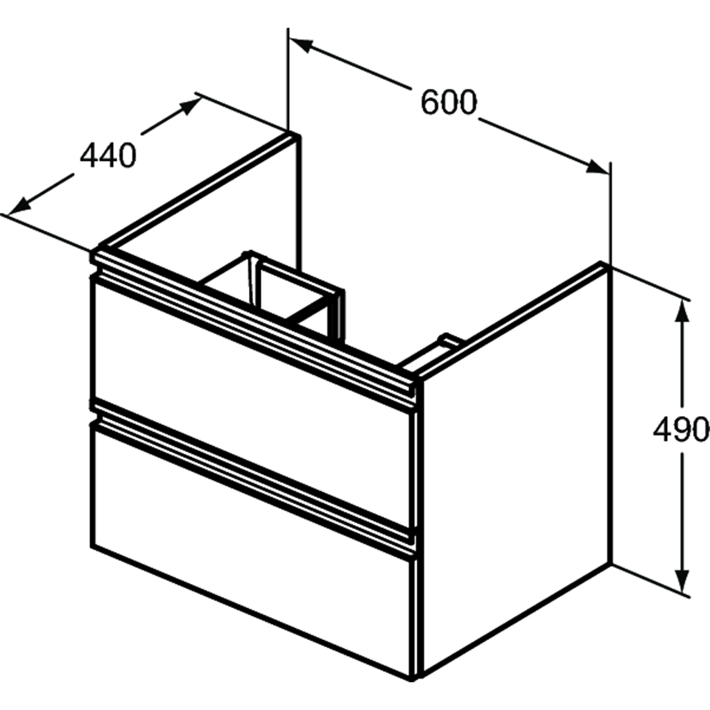 Κάτω μέρος επίπλου κρεμαστό διαστάσεων 60x44x49cm, της σειράς Tesi II από την Ideal Standard.