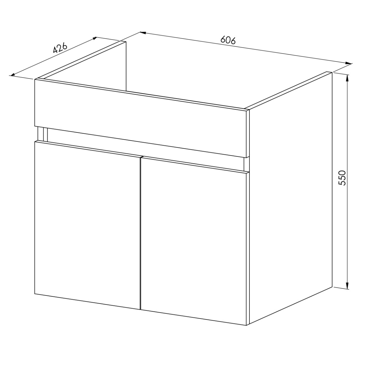 Βάση επίπλου μπάνιου κρεμαστή 65cm, της συλλογής Mona, με δυο ντουλάπια