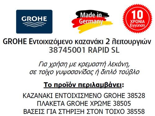 Εντοιχιζόμενο καζανάκι RAPID SL 38745001 με πλακέτα Grohe.