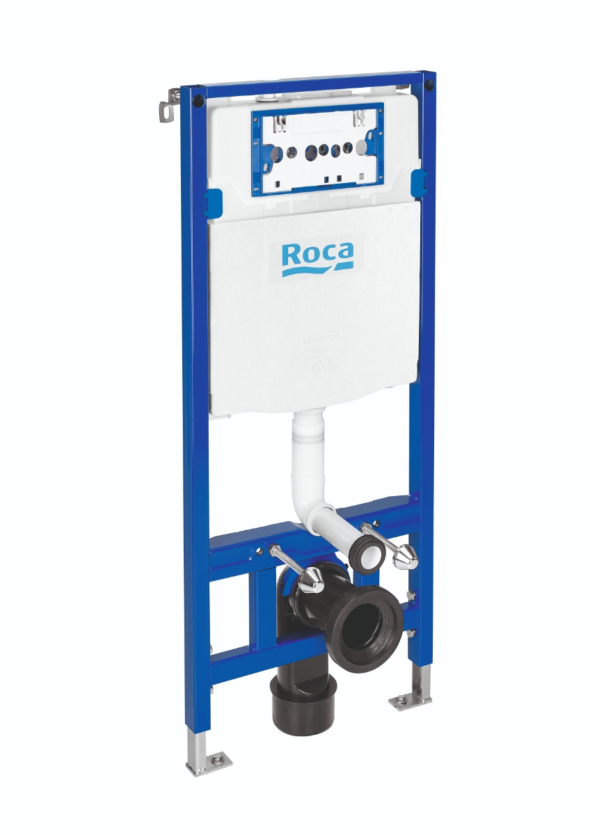 Εντοιχισμένο καζανάκι Dublo WC One διπλής ροής με πλαίσιο στήριξης δαπέδου για γυψοσανίδα, από τη Roca. Κατάλληλο για Έξυπνες Λεκάνες με πλακέτα διπλής λειτουργίας.