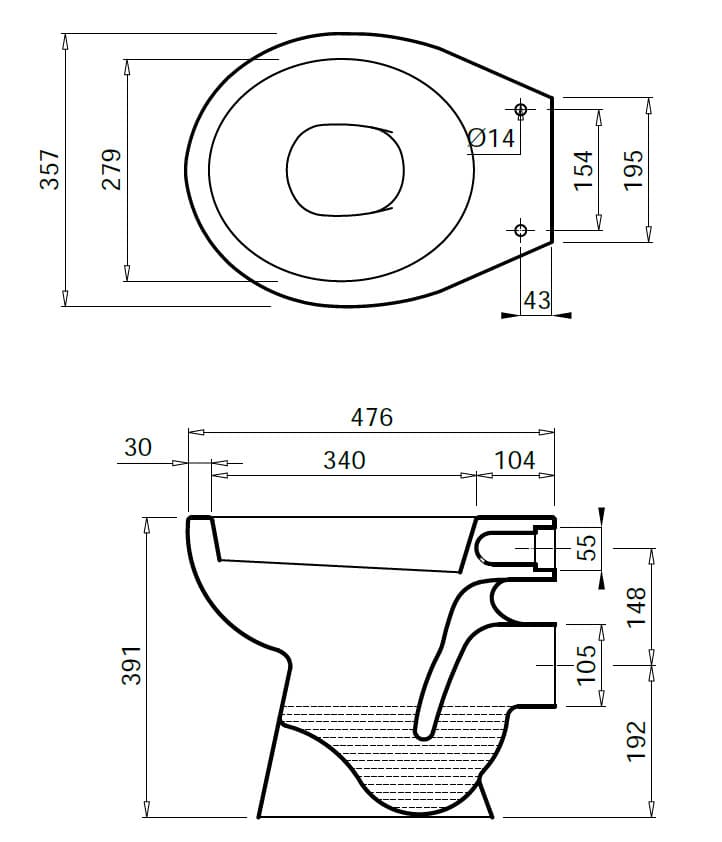 Απλή λεκάνη Σοράγια, λευκής πορσελάνης με οριζόντια αποχέτευση