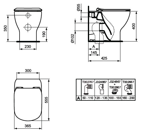 Λεκάνη απλή Tesi II AquaBlade BTW πίσω/κάτω σιφώνι Ideal Standard.