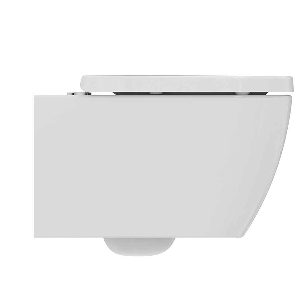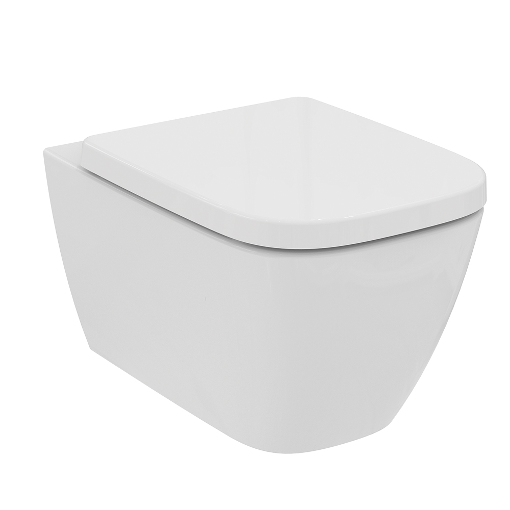 Κρεμαστή λεκάνη I-Life B, λευκής πορσελάνη, οριζόντιας αποχέτευσης, με τεχνολογία Rimless και κρυφό σύστημα στήριξης, από την Ideal Standard.