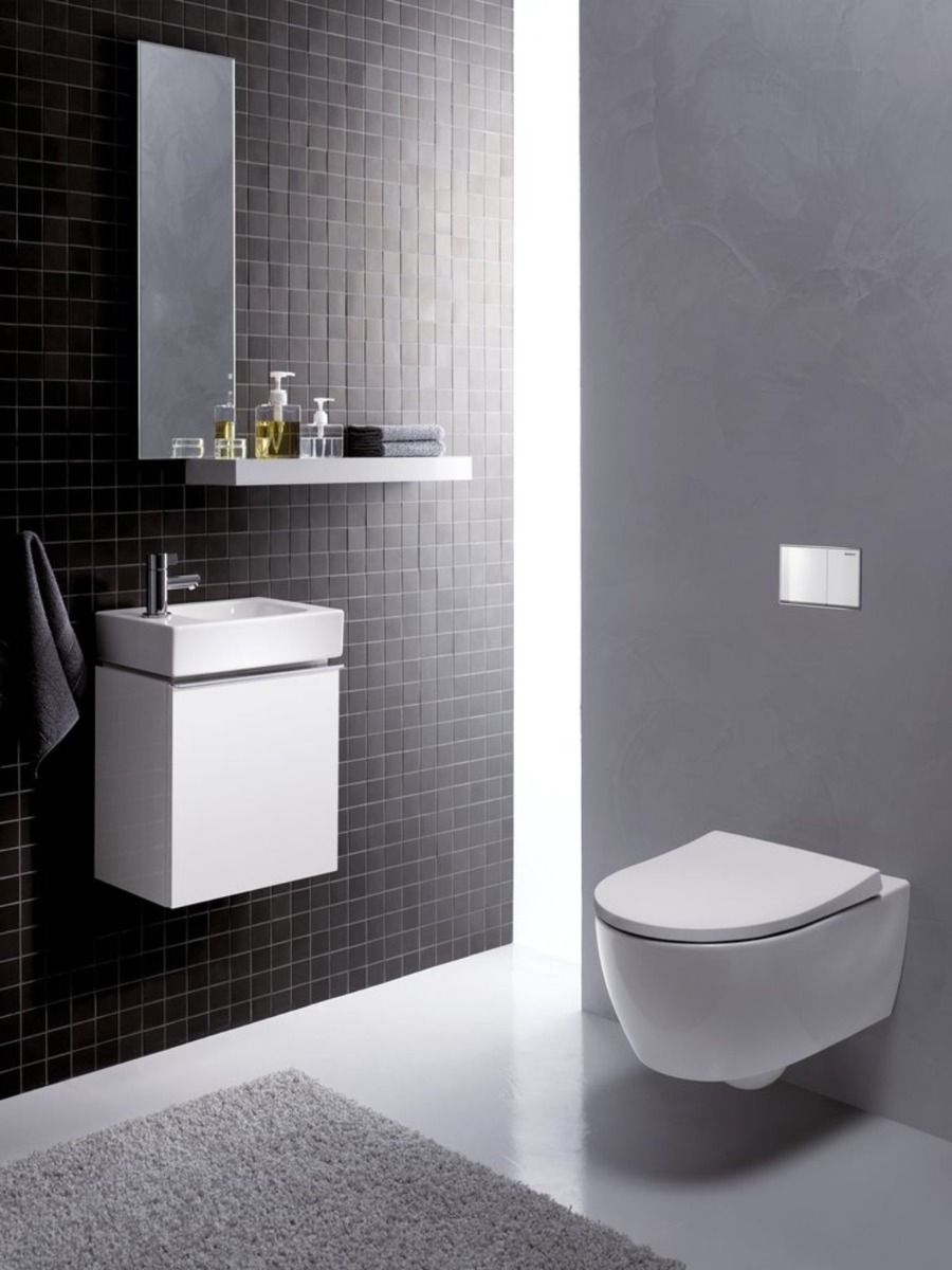 Κρεμαστή λεκάνη iCon, οριζόντιας αποχέτευσης μικρής προβολής 49cm, λευκής πορσελάνης, τεχνολογίας Rimfree, από την Geberit.