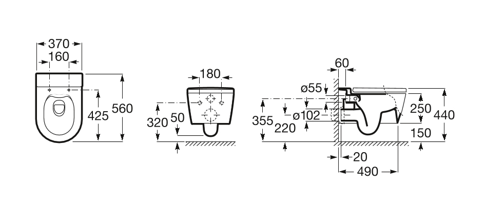 Λεκάνη κρεμαστή Inspira Round Rimless Onyx Roca.