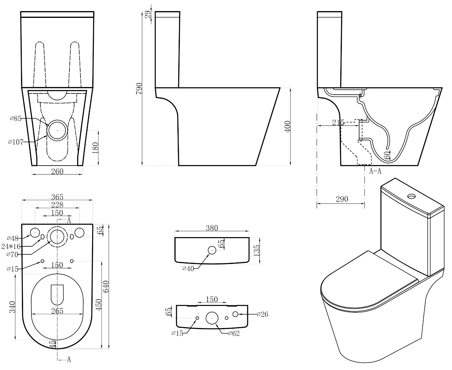 Ολοκληρωμένο σετ λεκάνης Piccadilly 1363B χαμηλής πίεσης, με πίσω σιφώνι,