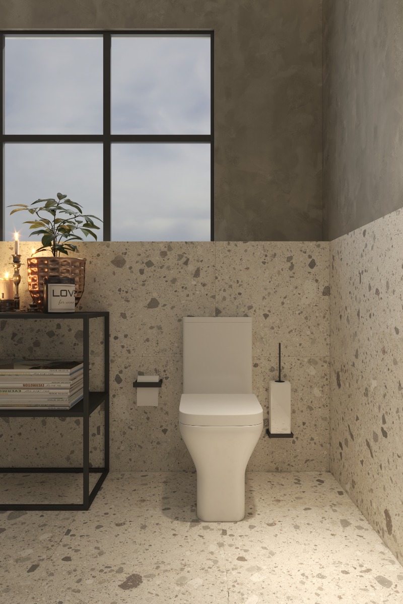 Ολοκληρωμένο σετ λεκάνης Trevi χαμηλής πίεσης rimless, με τετράγωνο σχεδιασμό, πίσω σιφώνι,