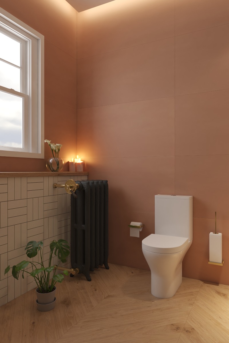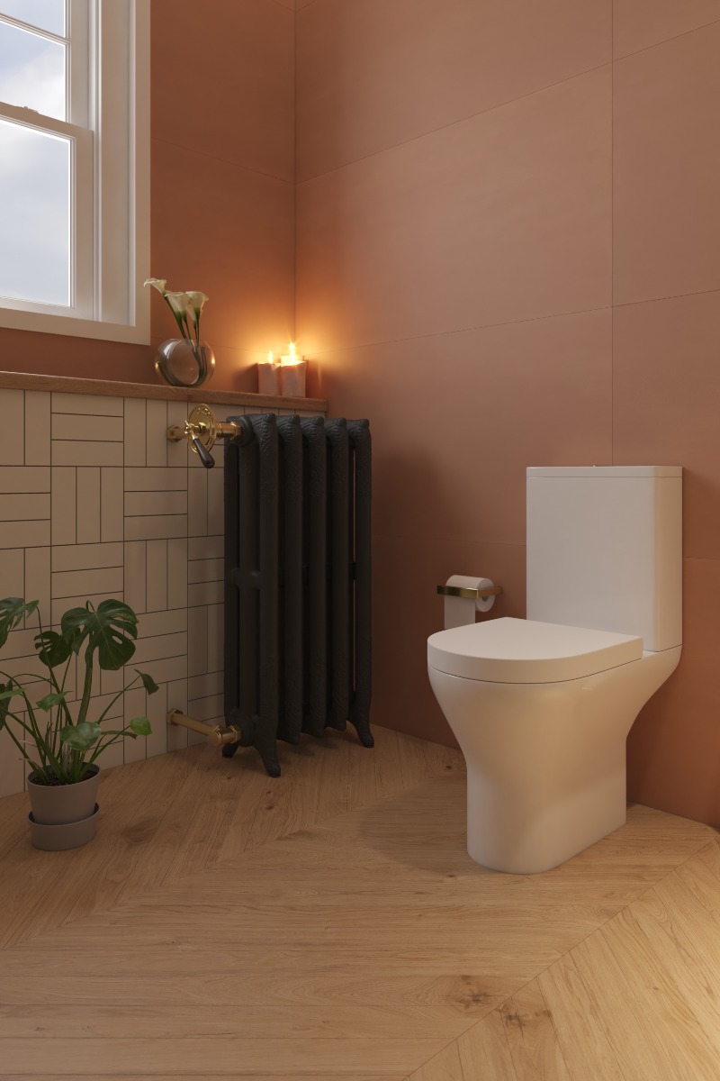 καζανάκι με πατητό μηχανισμό 2 λειτουργιών, παροχής πυθμένα και κάλυμμα με σύστημα soft close, από την Piccadilly.