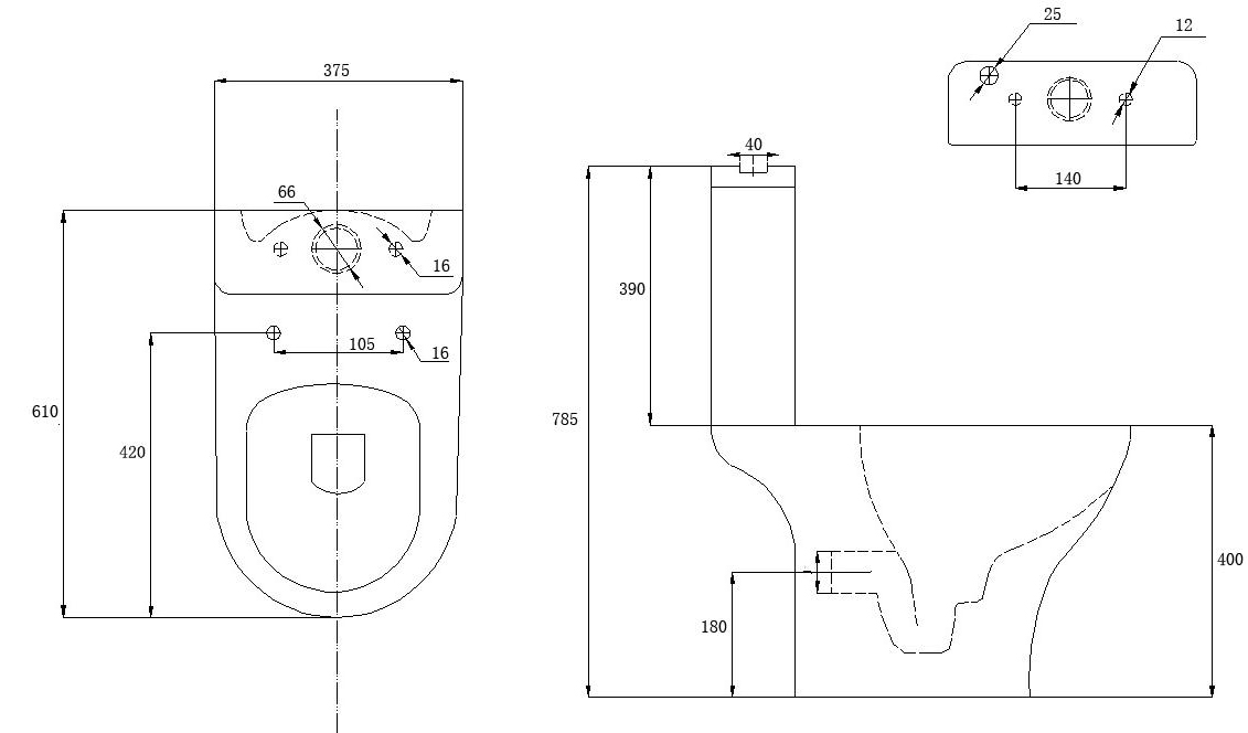 Ολοκληρωμένο σετ λεκάνης Trevi Round χαμηλής πίεσης, με στρογγυλό σχεδιασμό, πίσω σιφώνι,