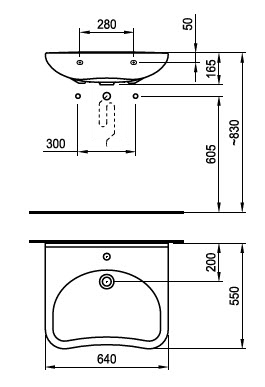 Εργονομικός νιπτήρας διάστασης 64cm, σε λευκό χρώμα, κατάλληλος για χρήση ΑΜΕΑ, από τη Fayans by Roca Group.