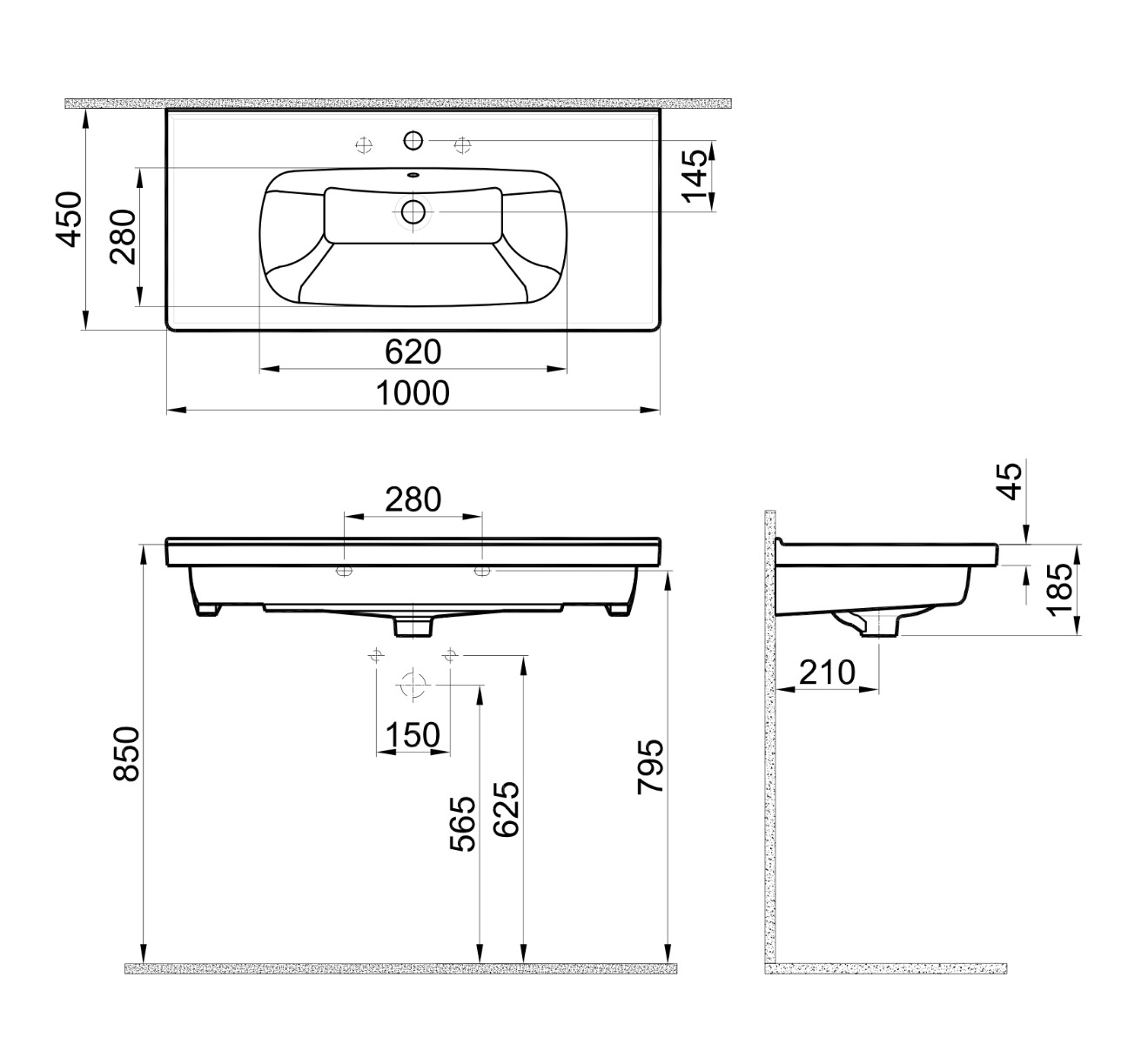 Νιπτήρας για έπιπλο μπάνιου 100cm, της συλλογής Mona, σε λευκό χρώμα.