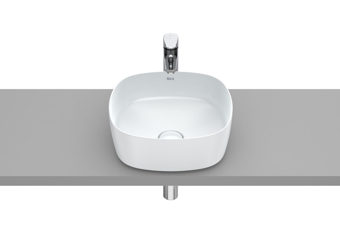 Νιπτήρας ελεύθερης τοποθέτησης της σειράς Inspira Soft, από FINECERAMIC® σε τετράγωνο σχήμα και χρώμα Pearl, από την Roca.