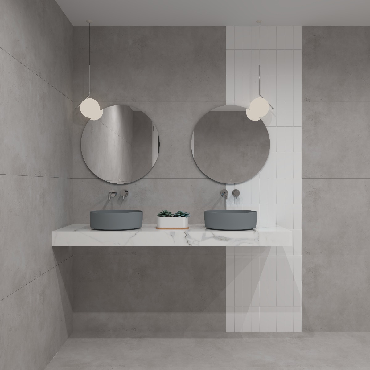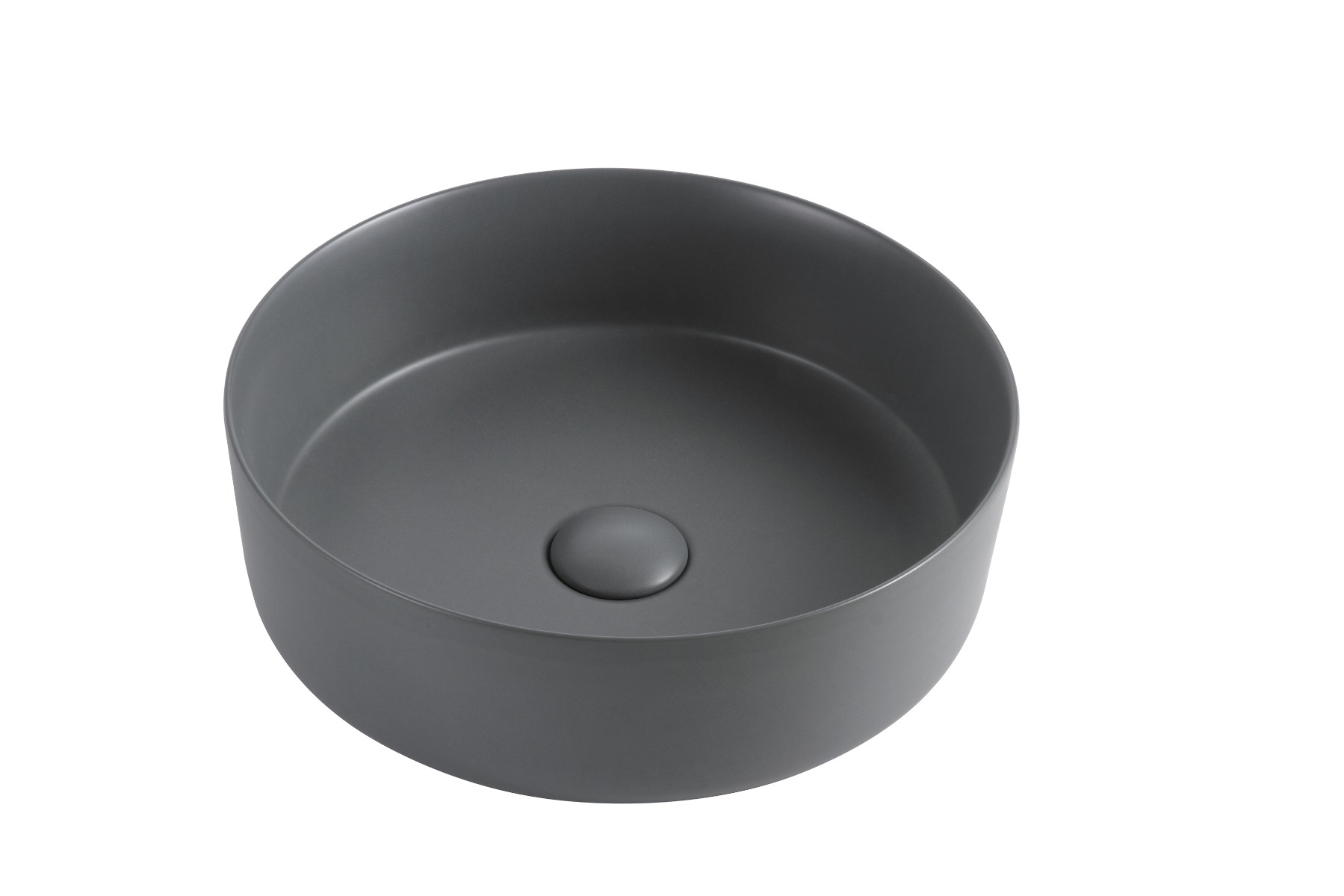 Νιπτήρας πορσελάνης σε γκρι ματ χρώμα και στρογγυλός διαμέτρου Φ36cm, για ελεύθερη τοποθέτηση / πάγκου της σειράς GA-4016B(DG) , χωρίς υπερχείλιση και χωρίς οπή για μπαταρία, από την Piccadilly.