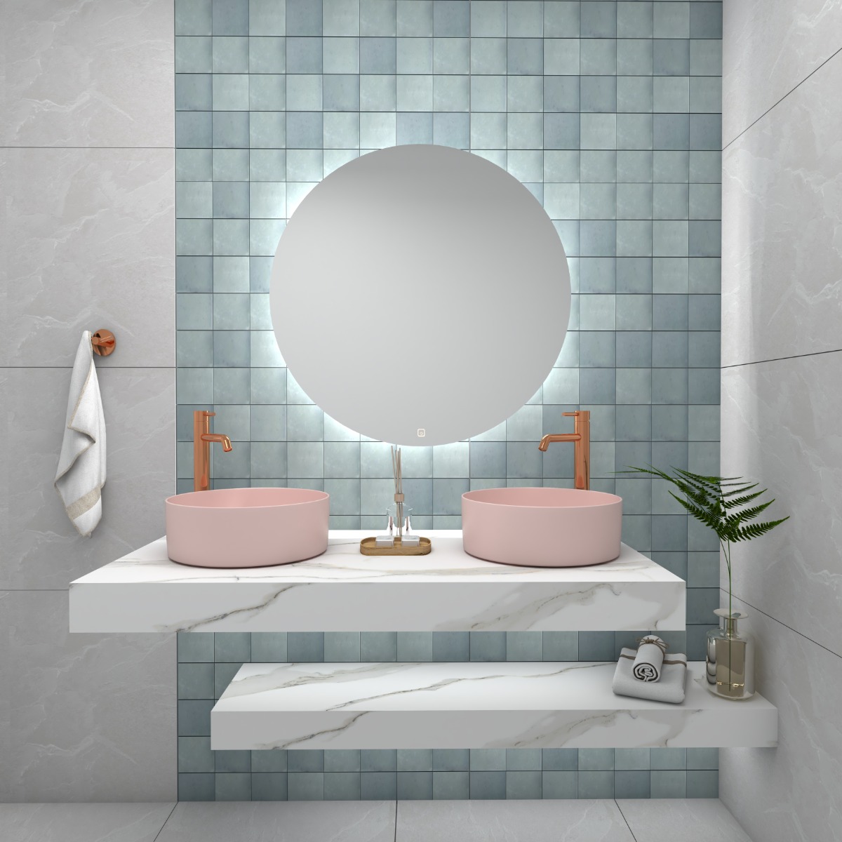Νιπτήρας πορσελάνης σε ροζ ματ χρώμα και στρογγυλός διαμέτρου Φ36cm, για ελεύθερη τοποθέτηση / πάγκου της σειράς GA-4016B(PI) , χωρίς υπερχείλιση και χωρίς οπή για μπαταρία, από την Piccadilly.