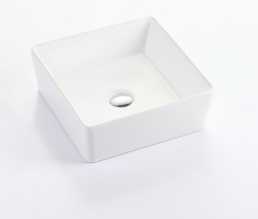 Νιπτήρας πορσελάνης σε λευκό χρώμα τετράγωνος και διαστάσεων 39x39cm και ύψους 14cm, για ελεύθερη τοποθέτηση / πάγκου της σειράς GA-4013, χωρίς υπερχείλιση και οπή για μπαταρία, από την Piccadilly.