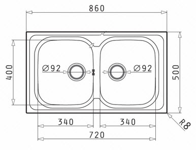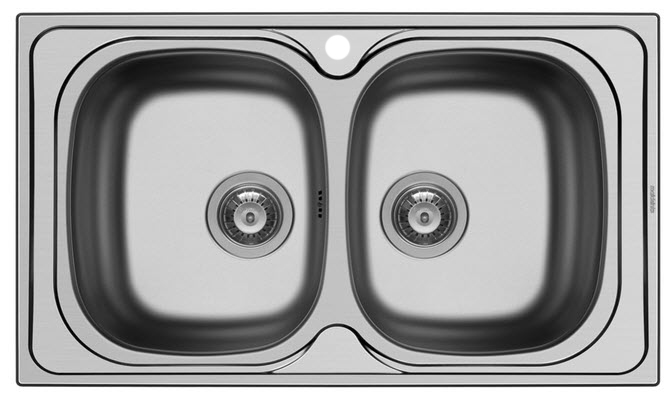 Ένθετος νεροχύτης από inox με 2 γούρνες, για ερμάριο 80cm.