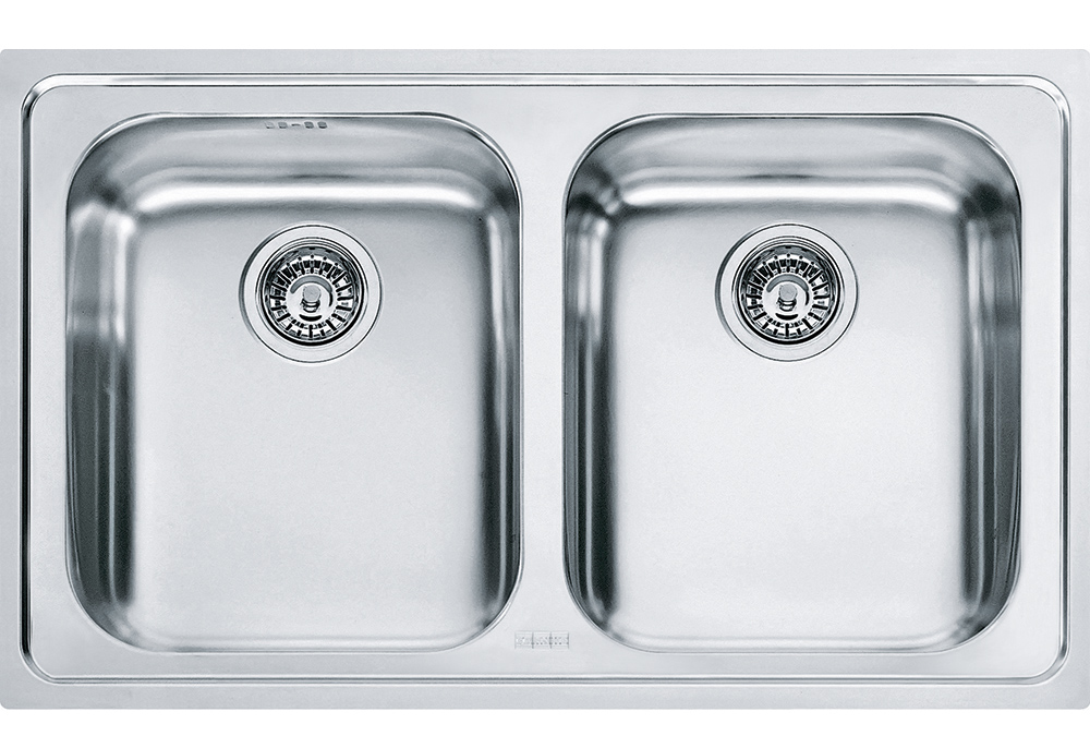 Ένθετος ανοξείδωτος νεροχύτης Logica Line Lox 620-34-34 86x50cm με 2 γούρνες για ερμάριο 80cm, Franke.
