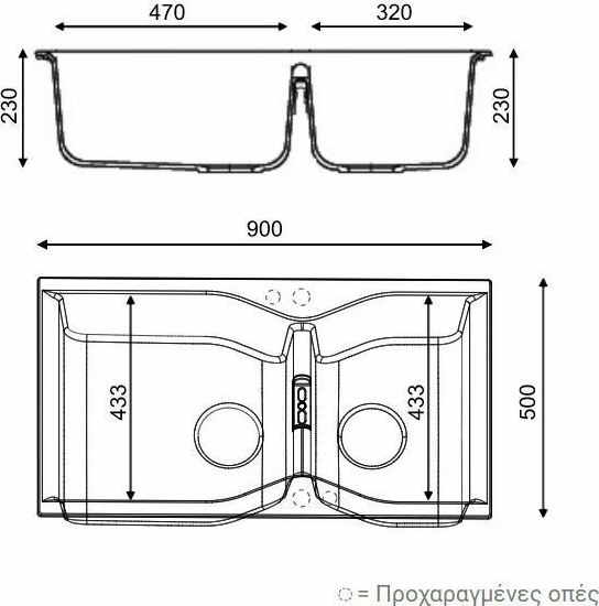 Διάσταση Γούρνας Μ/Π/Υ (mm)