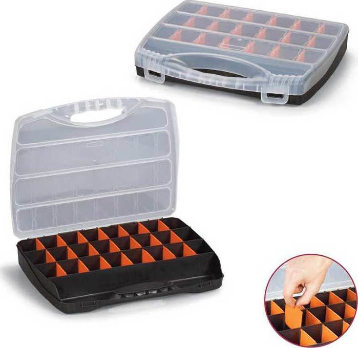 - Κατασκευασμένη από ανθεκτικό πλαστικό σε μαύρο χρώμα, με συναρμολογούμενα χωρίσματα. Αυτό σας βοηθάει να διαμορφώνετε κάθε φορά το μέγεθος και το πλήθος των χωρισμάτων ανάλογα με τα εργαλεία που θέλετε να τακτοποιήσετε.