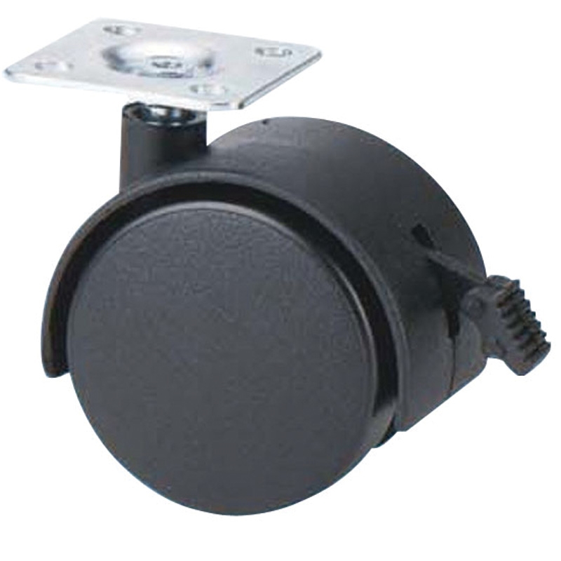 Ρόδα διπλή Φ50 mm με πέλμα & φρένο 38 x 38 mm μαύρη