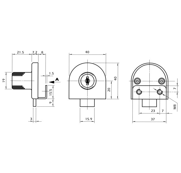 - Περιλαμβάνει : κλειδαριά, ροζέτα, αντίκρυσμα, 2 βίδες Μ8 και 2 κλειδιά