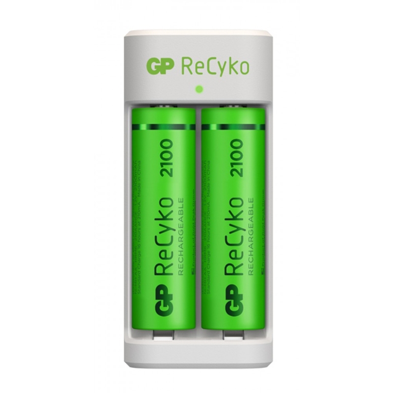 GP Recyko φορτιστής USB με 2 επαναφορτιζόμενες μπαταρίες AA 2100mAh.