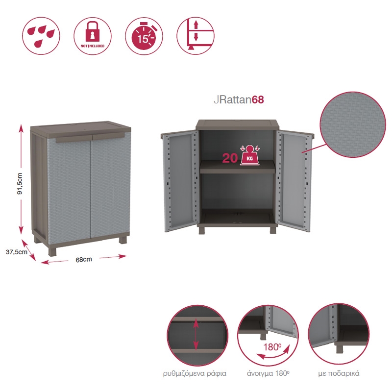 ΔΙΦΥΛΛΗ ΝΤΟΥΛΑΠΑ JRattan 68 ΠΛΑΣΤΙΚΗ με 1 Ράφι 68×37.5×91.5εκ.