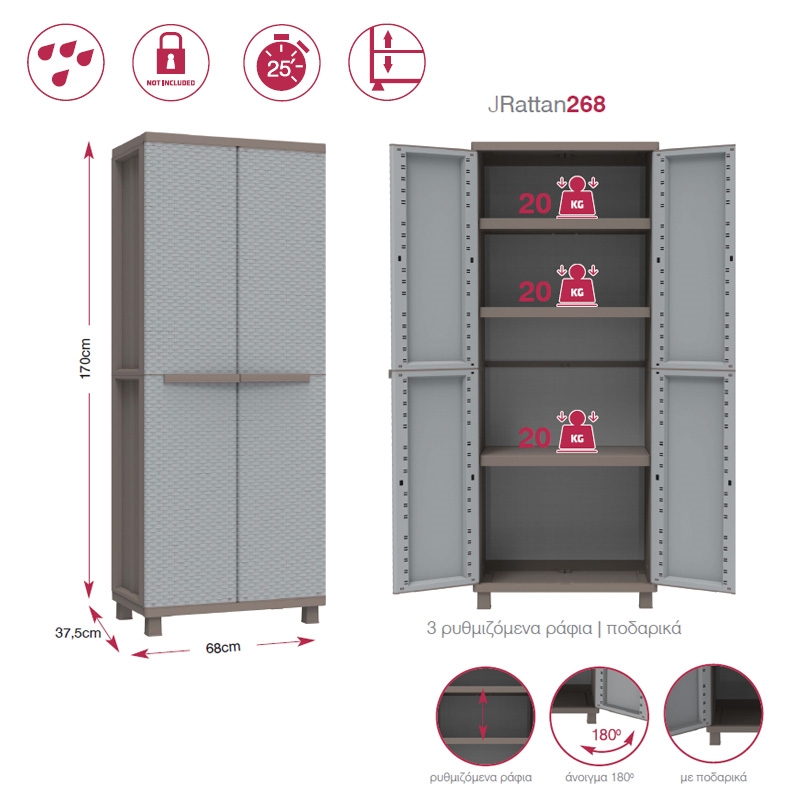 ΔΙΦΥΛΛΗ ΝΤΟΥΛΑΠΑ JRattan ΠΛΑΣΤΙΚΗ με 3 Ράφια 268 68×37.5×170εκ.68 – 2φυλλη