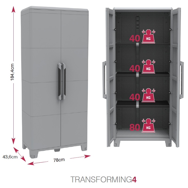 ΔΙΦΥΛΛΗ ΝΤΟΥΛΑΠΑ TRANSFORMING ΠΛΑΣΤΙΚΗ ΜΕ 3 ΡΑΦΙΑ (78×43.6×185εκ)