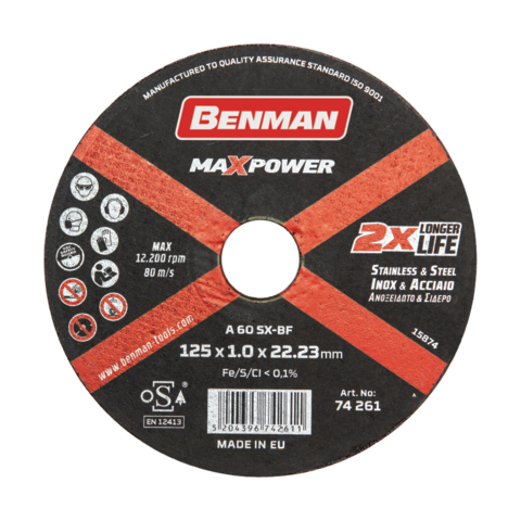 ΔΙΣΚΟΣ ΚΟΠΗΣ INOX (115mm X 1,0mm) CD MAXPOWER BENMAN ΜΑΥΡΟΣ