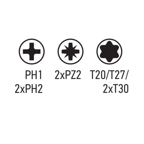 - TORX: T25/ T27/ 2xT30